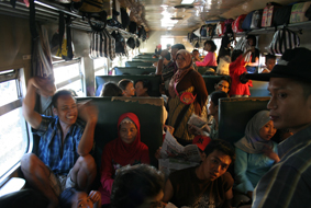 Další dobrodružství na nás čekalo na cestě vlakem zpátky do Jakarty. Nacpaný vlak se slabé přídavné jméno. To se musí prostě zažít. Po hodinách stání si člověk najde místečko, aby si alespoň dřepnul na bobek a jede se dál. My jsme teda pořád spíš stáli a pouštěli ostatní vlaky. Ale mě se to líbilo. Celý výlet se mi moc líbil a můžu říct, že se mi nechce do toho organizovaného a uklizeného Singapůru. Budu se muset i osprchovat...brr...tak se mějte.