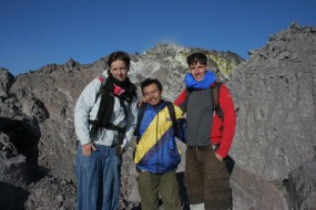 Odpoledne pokus o stopování, stopli jsme: autobus. Směs vesnice Selo, která je v sedle mezi Gudung Merapi (hora ohně) a Merbabu. Merapi je 2911m vysoká, stále aktivní sopka. Lezli jsme na ní ráno, start v 1:30, aby jsme stihli svítání (v Lonláku píšou, že to je jako super), škoda že byl mrak. Pak se ale vyjasnilo a bylo to super. Kráter, kouř, síra. Naposledy soptila v roce 2006 a 1994. Celá Indonésie má 129 aktivních sopek, nejvíc na Jávě.
