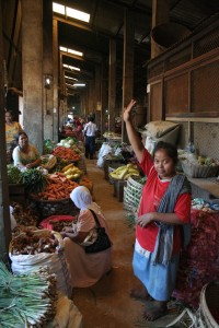 Když na Jávě řídíte motorku, tak si vemte rukavice. Né kvůli chladu, ale kvůli slunci. Po dvou dnech jsem měl dost spálené ruce. Provoz na silnici je neuvěřitelný. Spousta motorek a auťáků a všechno se žene kupředu. Je to jako řeka, když se někdo zastaví, oní vás obtečou. Dokonce i když jedete v protisměru. Po městě Solo to bylo výživný, ale viděli jsme boží tržižtě (teda ono bylo zeleninový...) a pěkný uličky. Výlet mezi rýžová políčka a čajové plantáže nám zvedlul hladinu kopcovatosti v krvi, což se po dvou měsících v Singapůru docela hodilo.